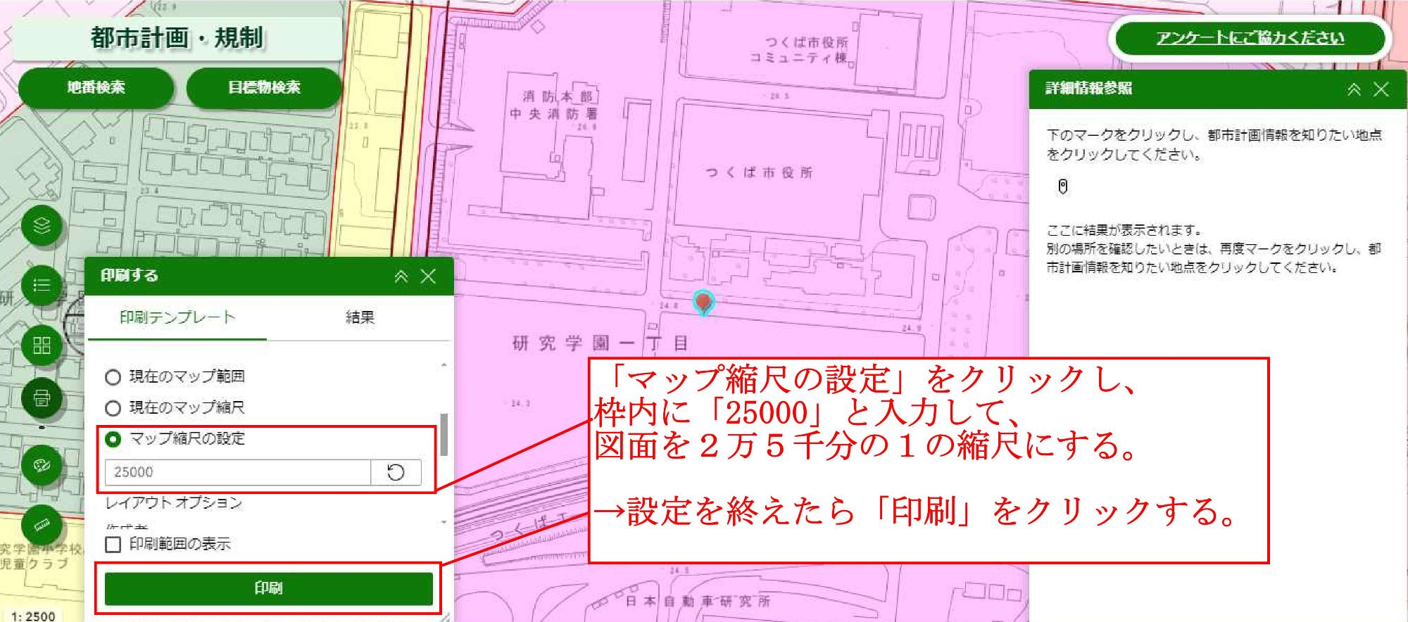 つくば市開発指導課へ申請する許可等申請書一式に添付が必要な「位置図」について、つくば市地図データサイト「つくミル」から作成・印刷するには?