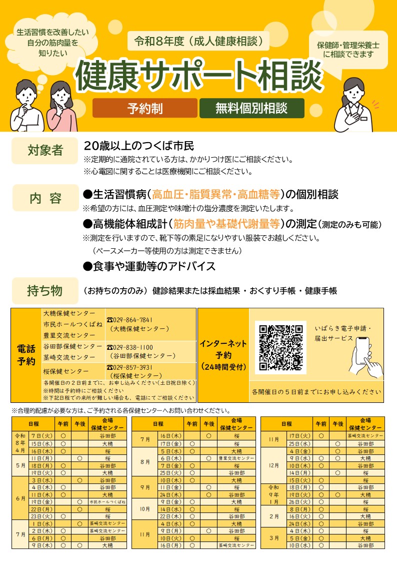 令和8年度健康サポート相談(成人健康相談)