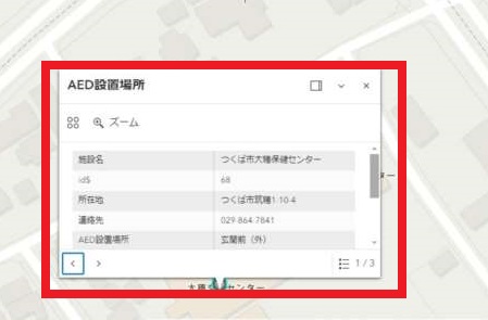 つくば市地図データサイト「つくミル」でもAED設置場所を調べることができます!