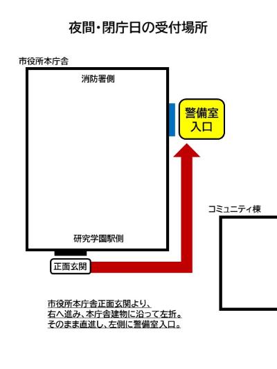 ※警備室は市役所本庁舎の北側に入口の扉があり、常駐の警備員が届書をお預かりします。