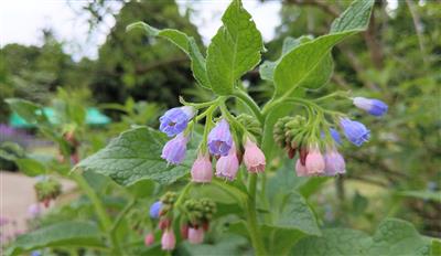 筑波実験植物園にクレマチスを観に行った際に出会いました。 初めて見るファンシーな色合いと小さくかわいらしい小人達が集まっているようなお花に一目惚れしました。 「ドワーフ・コンフリー・ビットコート・ブルー」というムラサキ科の植物だそうです。 覚えられず名札も撮影しました。 小人みたいと思ったらやっぱりドワーフでした。 |