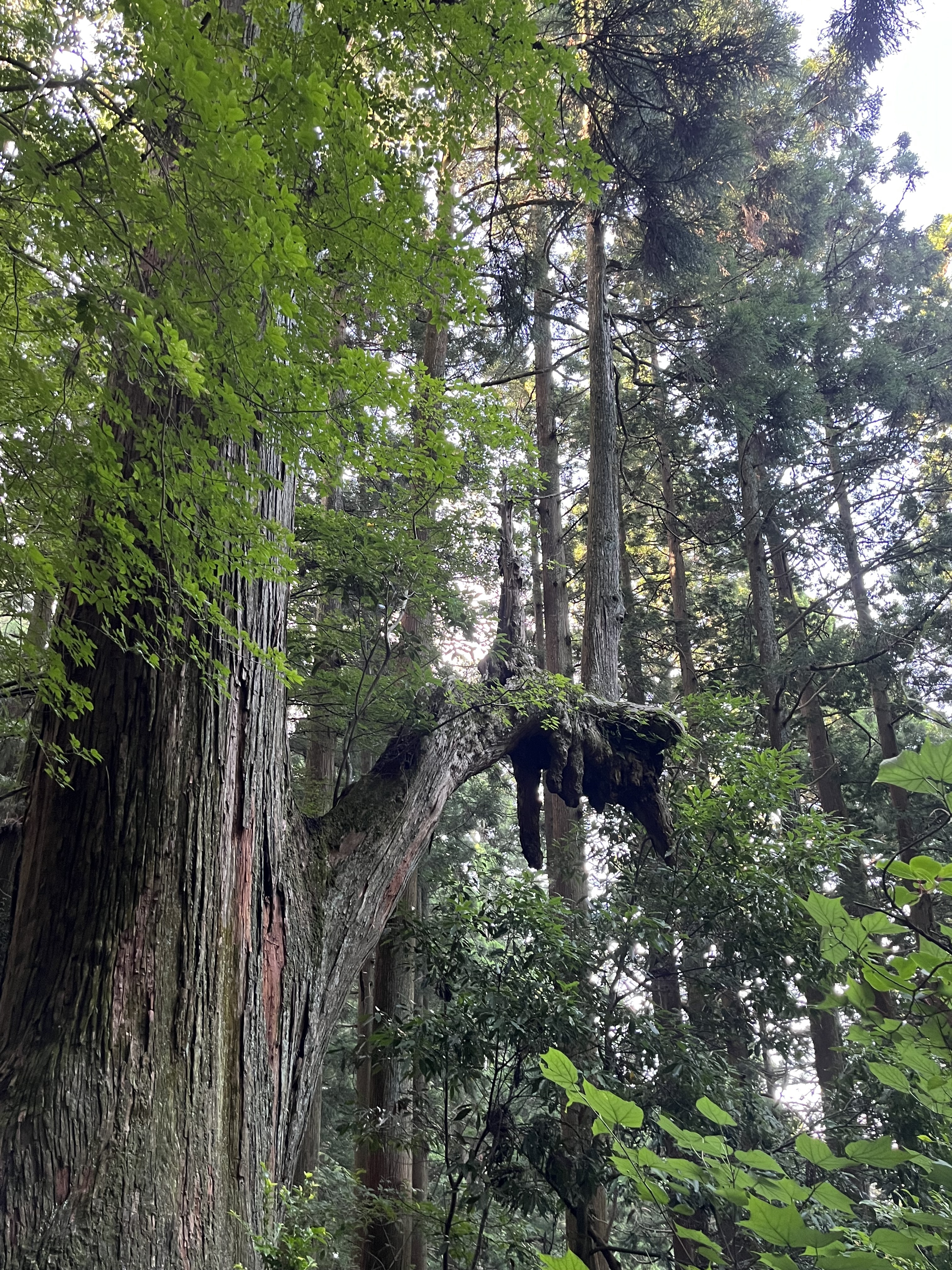 手のひらの上から杉‼️(ゆきんこ) | 筑波山ケーブルカー沿い登山道に、写真ではわかりづらいのですが、杉から伸びた腕のような枝の手のひらの部分からまた杉が数本生えていて面白いです |