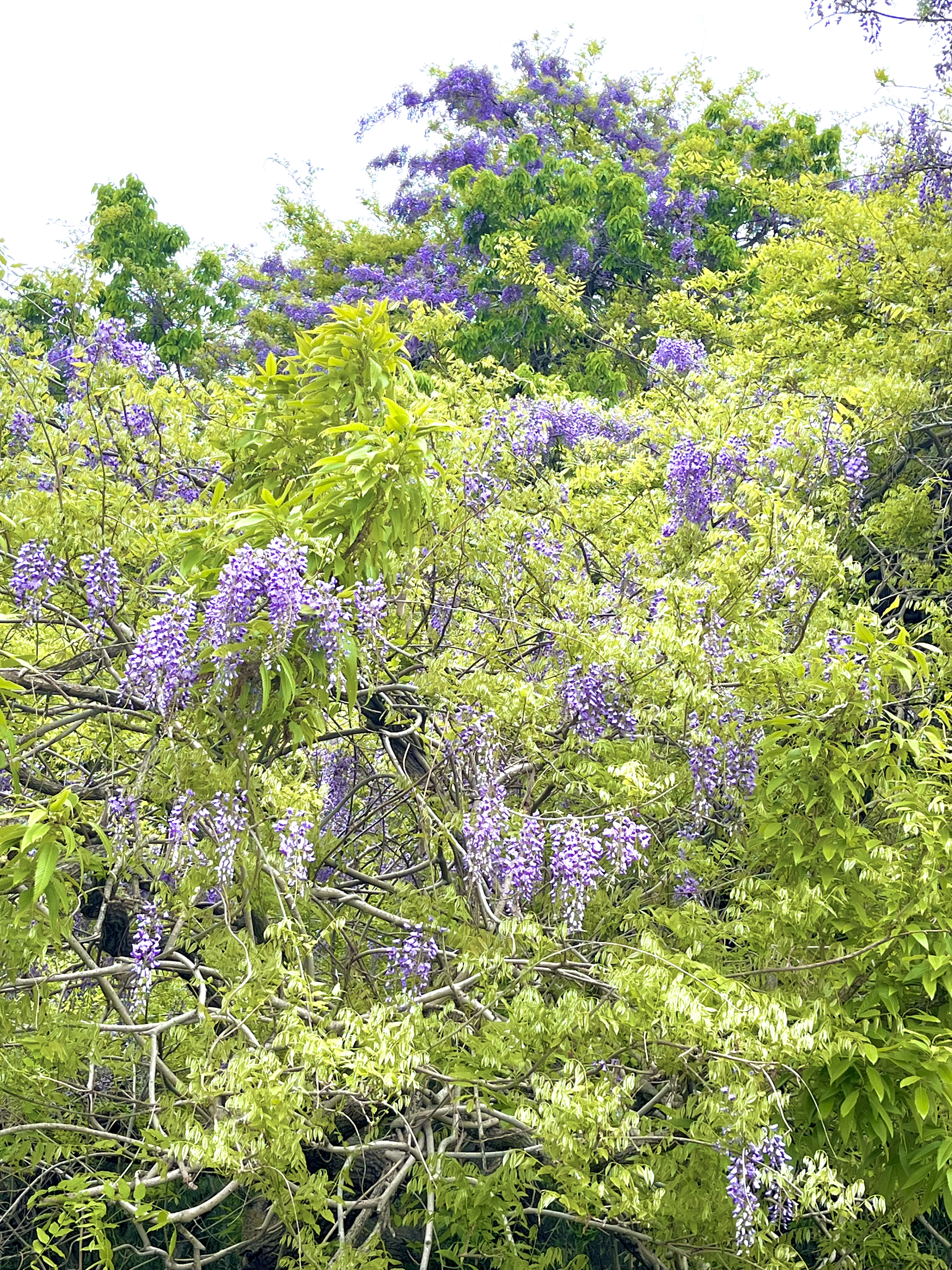 宝筐山 極楽寺コース登山口の藤(ゆきんこ) | 高さも幅も広範囲に藤が咲いており、カメラに収まりきれないので顔の高さの位置で撮影しました |