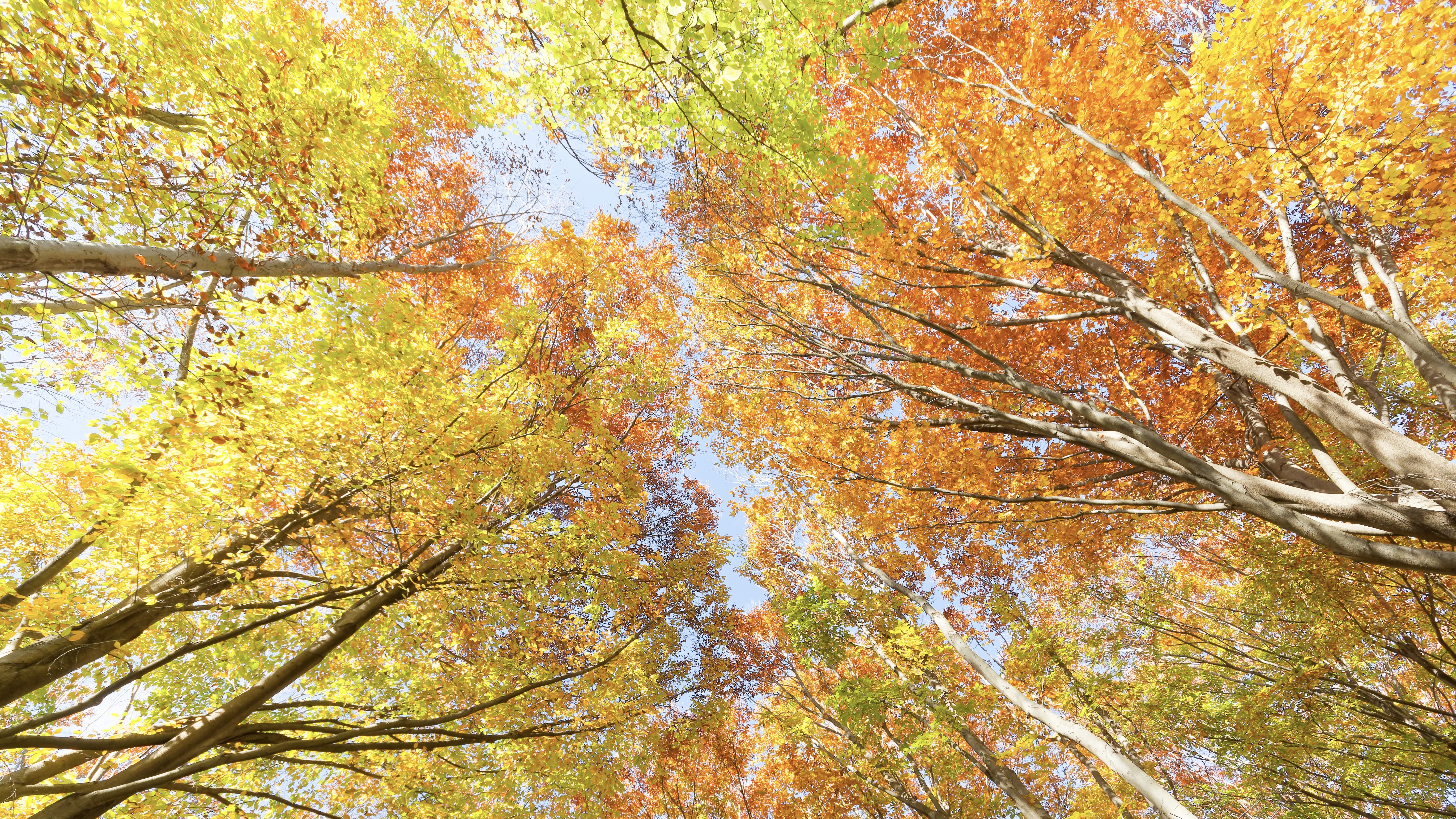 園内の落葉広葉樹林区での一枚です。澄んだ空の青色に、緑から紅に移り変わる葉の色が映え、とても美しく感じました。光の当たり具合から葉の繊細な質感も感じられるとともに、これから冬を迎えようとする植物たちのたくましさが伝わりました。