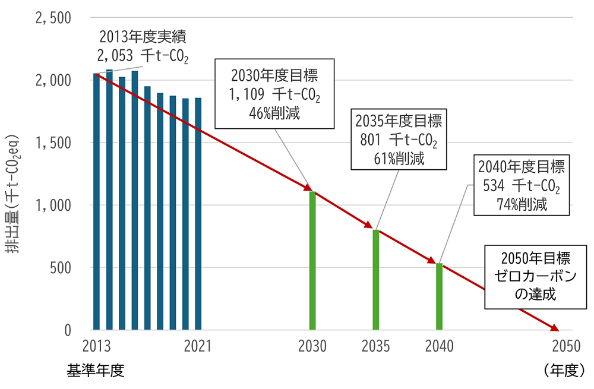 2040年度に2013年度比で 74% 削減(国目標:73%)