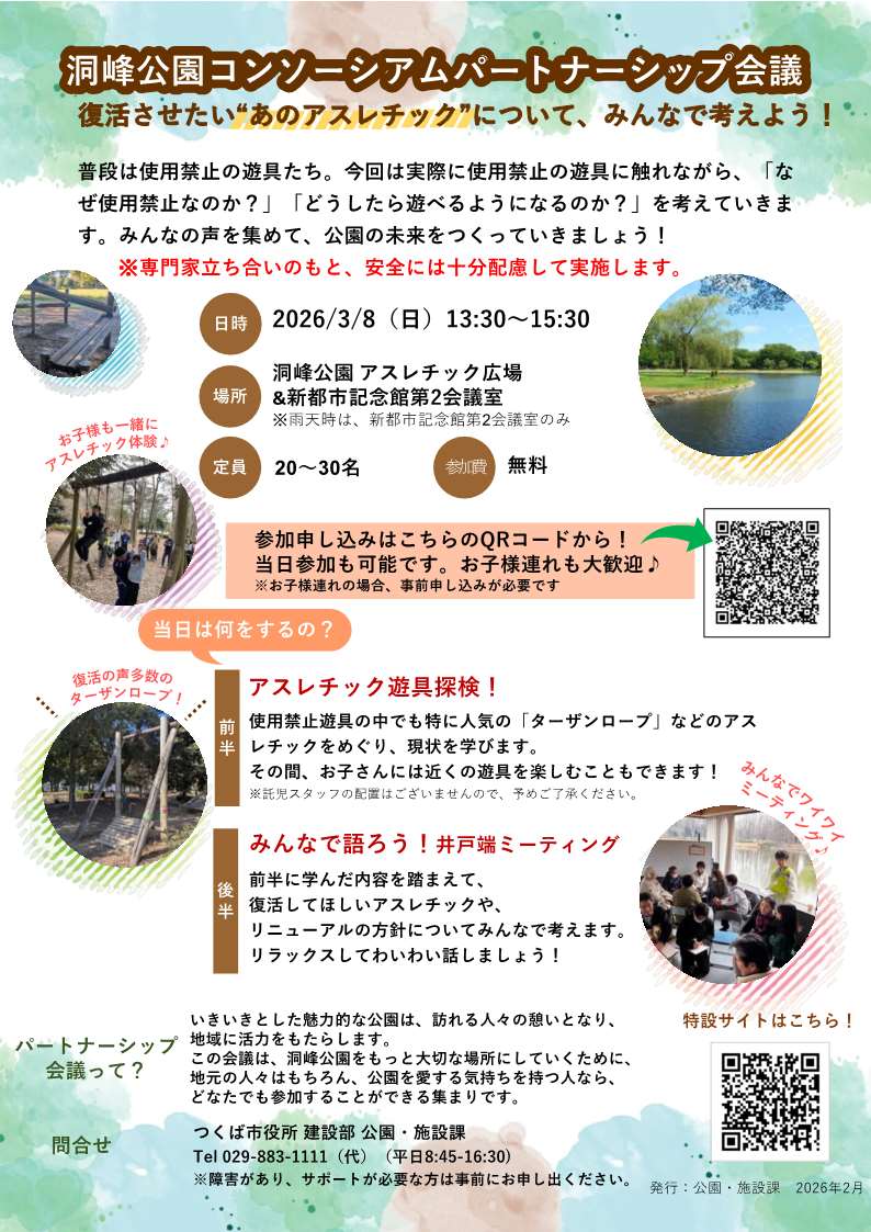 洞峰公園の市営化に伴い、市民の皆さんに向けて、運営の見える化と共同に力を注いでいくため、パートナーシップ会議(分科会)を開催します。